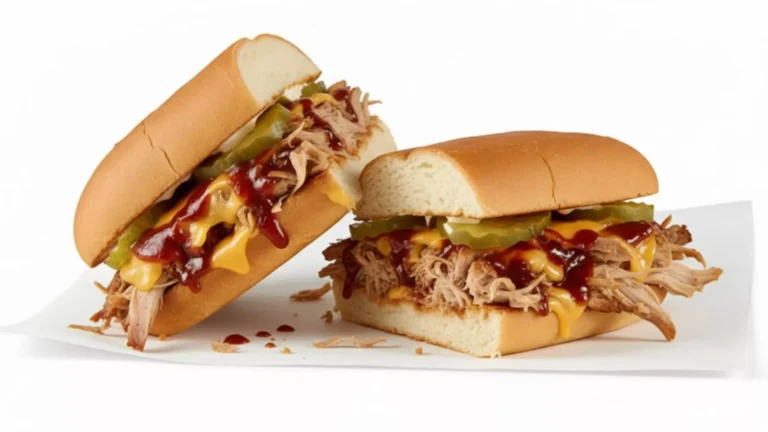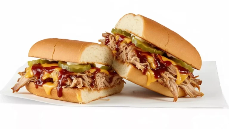 The sandwich is served on warm, toasted bread that is soft inside and a little crispy outside. The pork and sauce blend well and make the sandwich filling and satisfying. It is a good choice for lunch or dinner if you like barbecue with a small spicy kick.